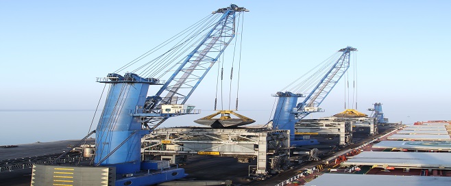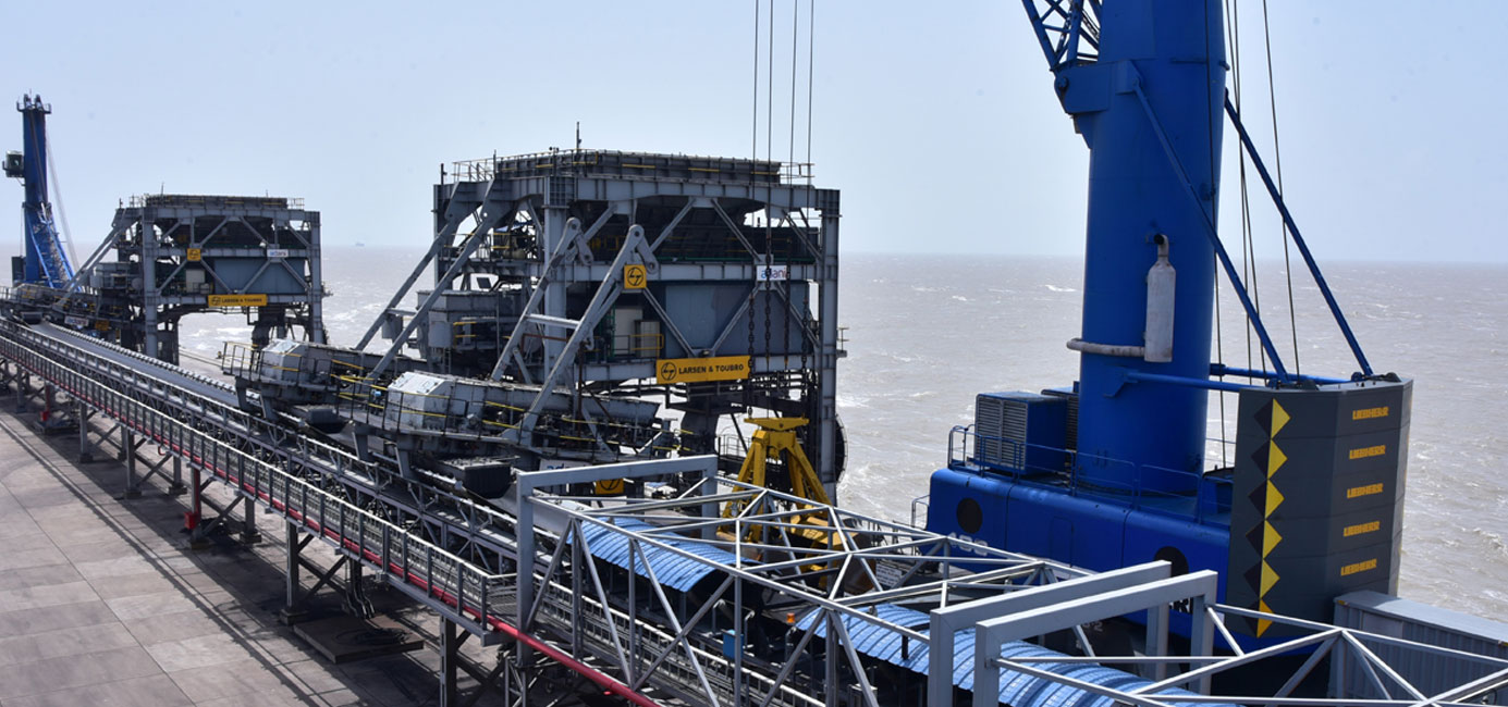 The terminal infrastructure at Tuna is capable of simultaneously handling multiple vessels. A set of high capacity Liebherr Cranes and Hoppers ensure quick discharge of vessels.